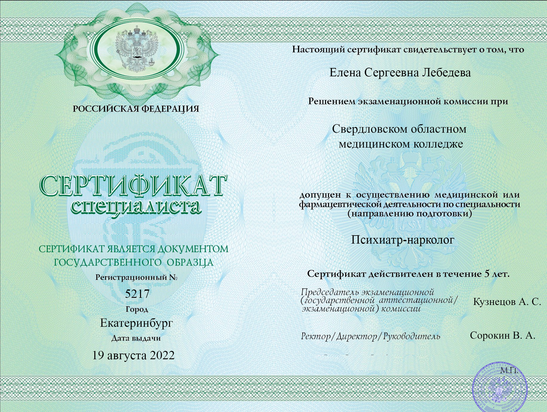 Елена Сергеевна Лебедева врач нарколог клиники доктора Стукаловой в Осташкове